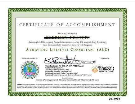 Khabir's Certificate Ayurvedic Lifestyle Consultant (ALC) & Ayurvedic Practitioner (AP) Program