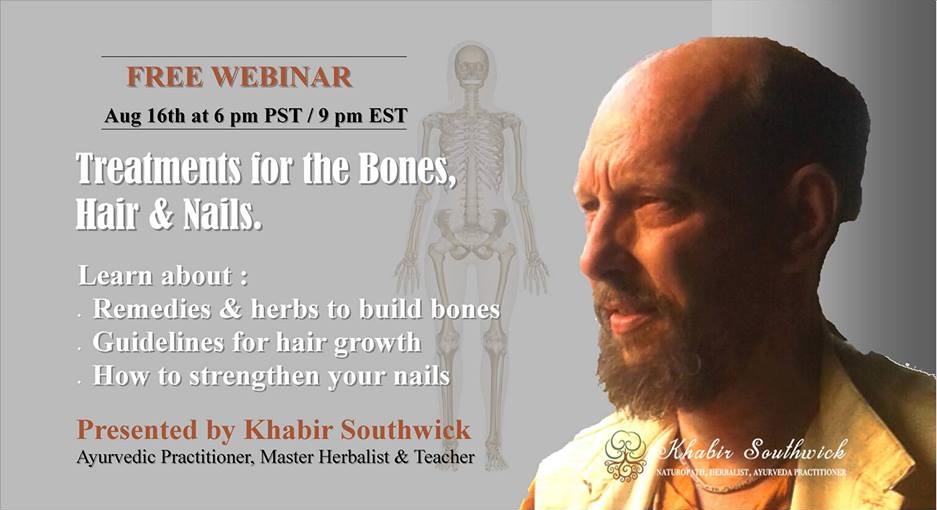 This detailed class is an introduction to herbal treatments that build bones, help hair grow and strengthen finger/toe nails. Khabir will discuss herbs and formulas such as dashamula formula, [Indian herb] hadjod, purified coral powder, comfrey root oil, horsetail, nettle and alfalfa.